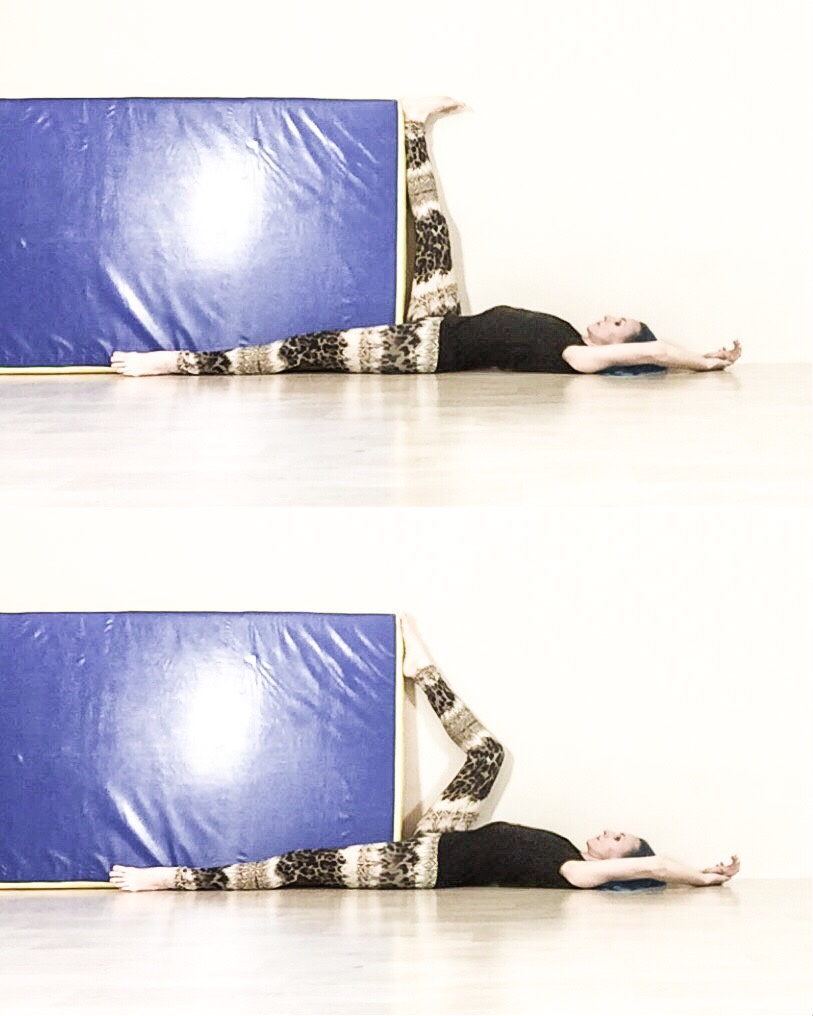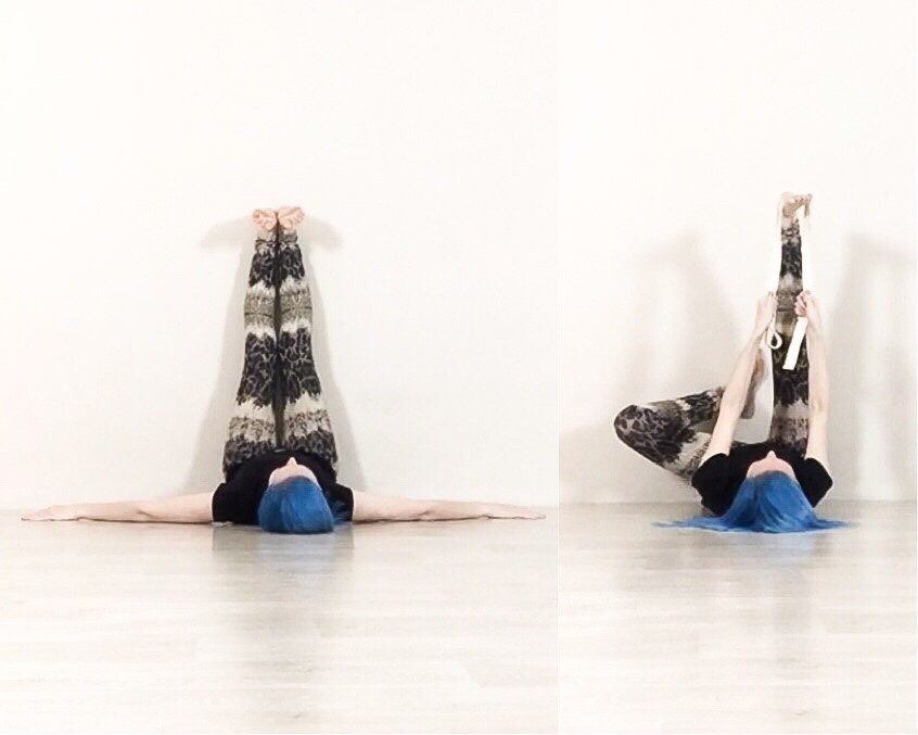 б) антишпагат – работаем ногами так, будто хотим соединить их вместе и подняться вверх. При этом будет нужна опора, чтобы ровно держать корпус.