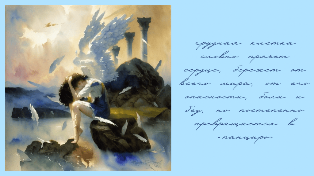 И действительно, грудная клетка словно прячет сердце, бережет от всего мира, от его опасности, боли и бед. Но чем больше мы прячемся, тем больше обрастаем своим «панцирем», и в один прекрасный день попытка расправить плечи требует уже значительных усилий.
