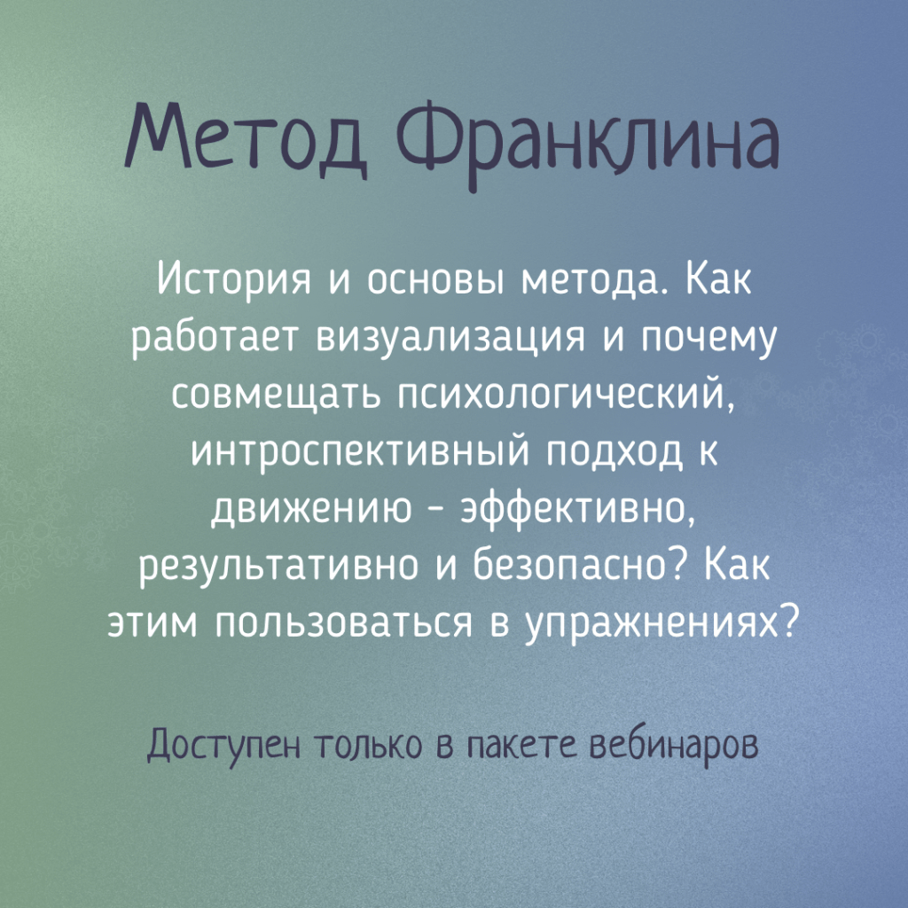 Что такое метод Франклина? История и основы метода. Как работает визуализация и почему совмещать психологический интроспективный подход к движению – эффективно, результативно и безопасно? Как этим пользоваться в упражнениях?
