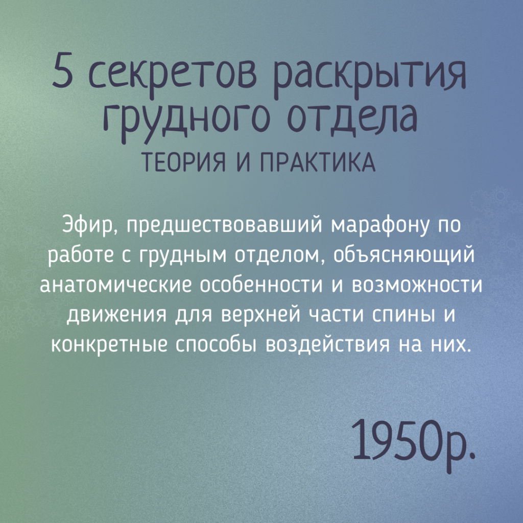 5 секретов раскрытия грудного отдела: теория и практика. Эфир, предшествующий марафону по работе с грудным отделом, объясняющий анатомические возможности движения для верхней части спины и конкретные способы воздействия на них.