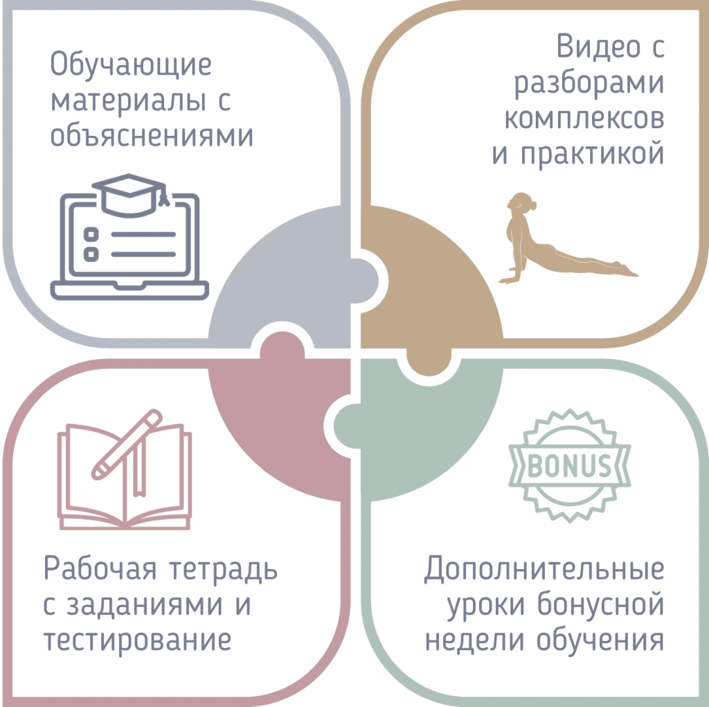На курсе мы обсудим все ОТ разминки ДО глубокой растяжки, научимся адаптировать упражнения под свои возможности и цели и собирать из них свою индивидуальную программу занятий.